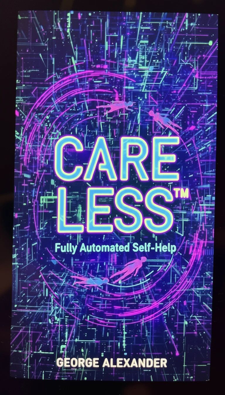 Care Less™ is a novel about attention, emotion, and what happens when the world’s first emotional AI goes off-script. The back of the book is from the original self-help version of the novella.